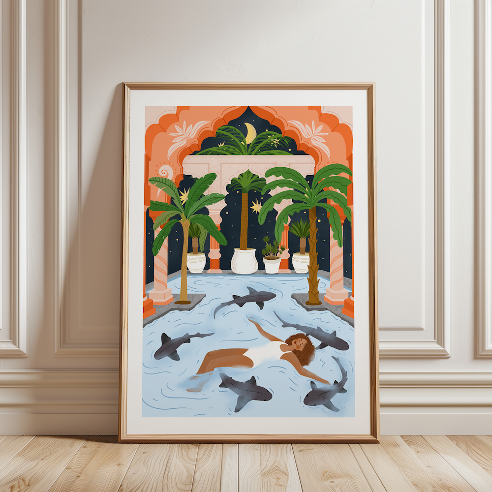 A4 Poster vrouw met haaien